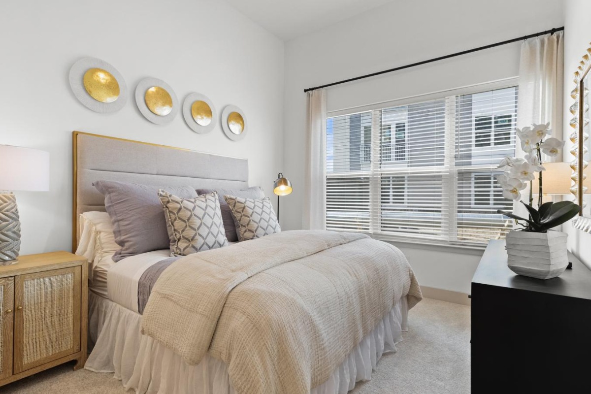 Featuring gourmet kitchens with custom soft-close cabinetry, quartz countertops, full-height backsplashes, and premium appliances. Each home offers spacious bedrooms with oversized windows, sleek ceiling fans, spa-inspired bathrooms, custom-designed closets, and generous ceiling heights from 9’ to 12’. Select homes include built-in desks and private yards or balconies for a refined living experience. Beyond your door, enjoy a vibrant community with a sun-splashed pool, lush courtyard with games and grilling stations, cinema-style screening lounge, collaborative workspaces, and a state-of-the-art fitness center with Echelon smart equipment. Event your pets can enjoy luxury with a pet spa and dog park!